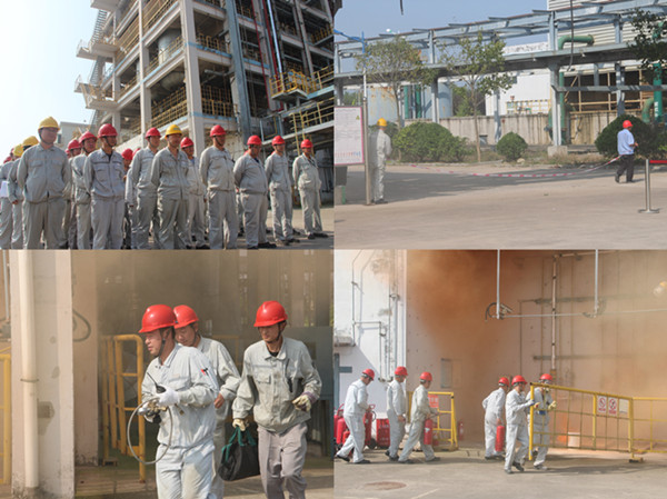 “既要生产安全,又要安全生产”,为了提高员工在生产过程中对突发性事故的应急救援处置能力,安全环保部9月30日组织公司全员进行了三异丁基铝储罐管线在吹扫过程中事故的应急救援演练。